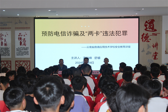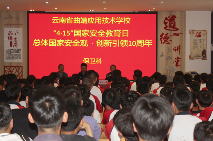 4月9日,学校邀请曲靖市公安局麒麟分局国保大队副队长、 曲靖市公安局麒麟分局文华派出所民警到校开展专题讲座,宣传国家安全的重要性和必要性,教育引导学生树立国家安全意识,培养总体国家安全观。并针对我校学生实际,围绕文明上网和预防电信诈骗等内容,向学生宣传网络安全有关知识,引导学生“绿色上网,健康上网,安全上网”,培育崇德向善风尚。讲座还以鲜活的事例告诫学生,要加强对电信诈骗和“两卡”违法犯罪的防范,要注意个人安全,妥善保管好自己的身份证、银行卡、手机卡等。