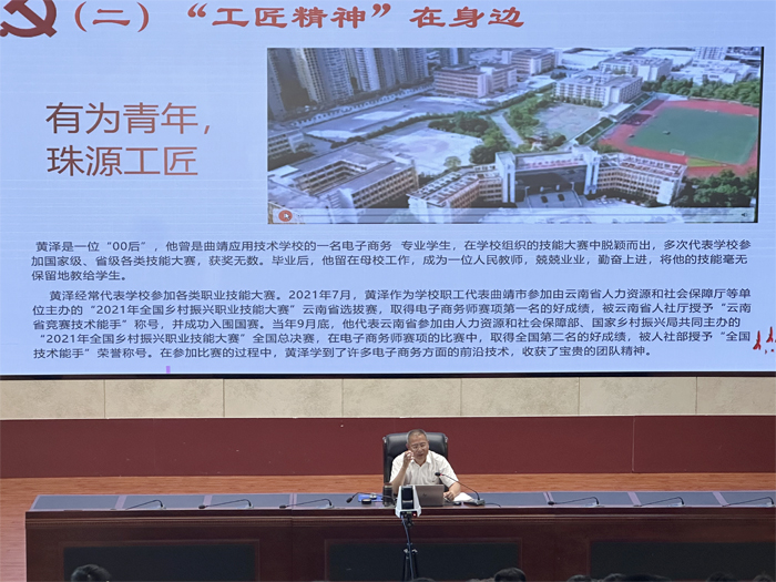 为深入贯彻落实习近平总书记在学校思想政治理论课教师座谈会上的重要讲话精神,落实立德树人根本任务,4月18日,学校党委副书记、校长刘进权以《如切如磋 如琢如磨——以“工匠精神”点亮青春之路》为题,为300余名学生代表上了一堂深刻的专题思政课。