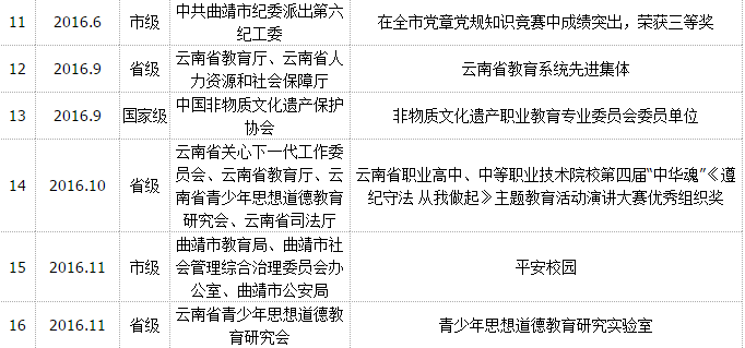 学校荣誉录(2016年度)