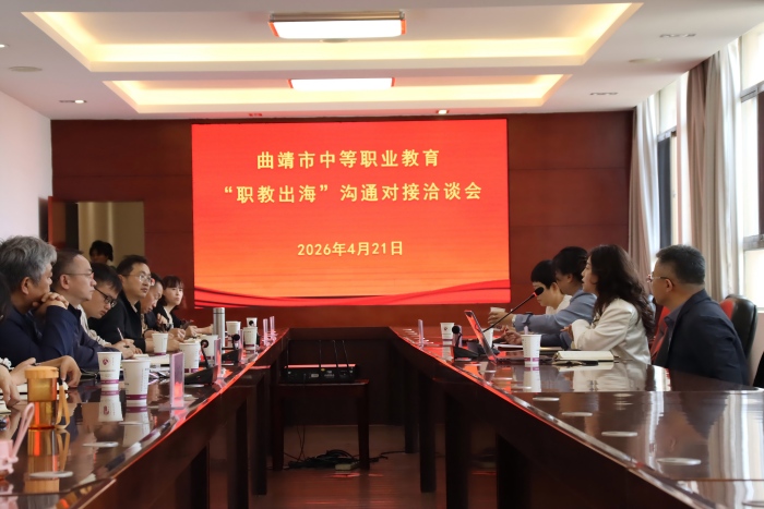 4月21日,曲靖市中等职业教育“职教出海”沟通对接洽谈会在我校举行。曲靖市教育体育局、昆明中央法务区集聚区、拓富仕国际集团、越南太原大学国际学院及5家职业学校相关领导参加会议。