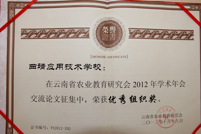 云南省用延安精神办学育人先进学校 2012年学术年会交流论文征集中获优秀组织奖