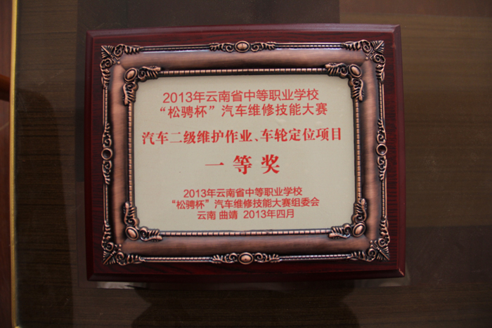 曲靖市语言文字规范化示范学校 汽车维修技能大赛“汽车二级维护、车轮定位”一等奖