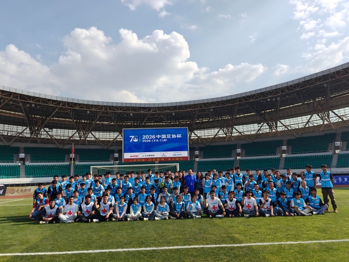 4月19日,2026年中国足球协会杯第二轮(云南爨合队对阵广州蒲公英队)在曲靖市文化体育公园体育场开赛,学校师生组成的志愿服务团队以饱满的热情和周到的服务圆满完成了本次赛事的志愿服务保障任务。