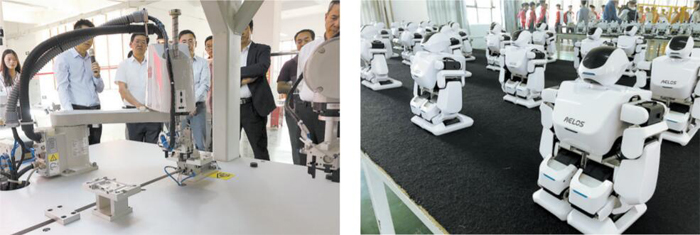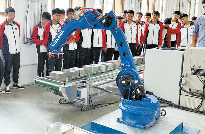 曲靖应用技术学校建成的智能制造产教融合实训基地共计投入 605 万余元,分二期建成,建有 5 个机器人工作站、柔性手机装配生产线、智能制造人才培训实训室、理实一体化教室和创客兴趣实训室,能满足学校机器人方向学生从局部到整体、从单个到系统的专业教学,并开展学生兴趣爱好和创造力的培养,还可面向社会开展智能制造人才的科普和培训。