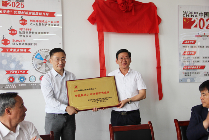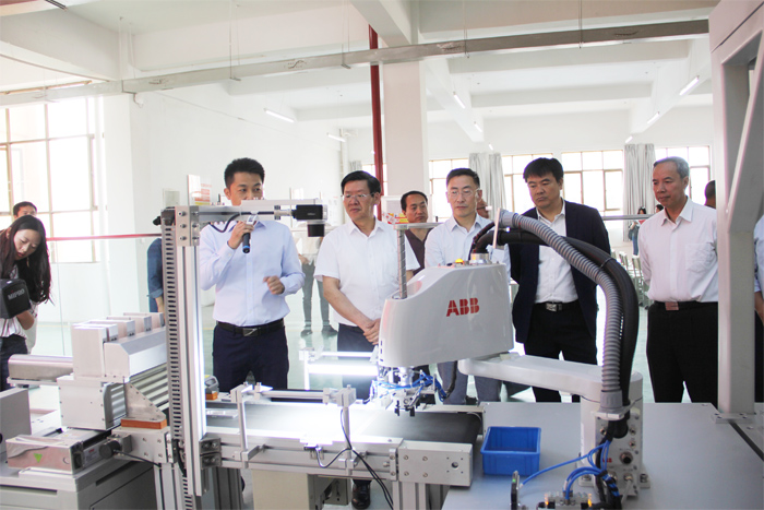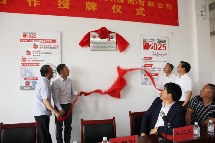 学校党委书记夏朝国同志,党委副书记、校长王宗舜同志、副校长刘星同志、ABB机器人(珠海)有限公司总经理王国超为实训基地揭牌,标志着我校智能制造实训基地正式成为ABB机器人(珠海)有限公司工业机器人实训基地。