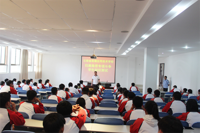 测试前,学校在全校师生中多次开展扫黑除恶专项斗争知识培训,解读了扫黑除恶政策及扫黑除恶专项斗争的目标、重要意义、活动安排、打击重点等内容。
