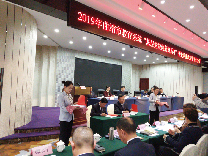 2月28日上午,中共曲靖市委教育工委组织召开全市教育系统“基层党建创新提质年”暨党风廉政建设工作会议。会议的主要任务是:学习贯彻中央、省、市党组织建设及党风廉政建设工作会议精神,对全市教育系统党建、党风廉政建设工作指出安排部署。