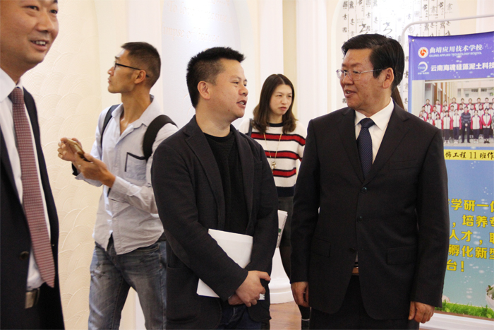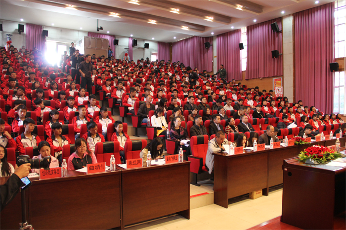 曲靖市教育局党委委员、副局长张兴华,曲靖市科技局副局长唐胥宁同志,曲靖市农业局党组副书记、副局长查刚,学校党委书记夏朝国,学校副校长刘星,云南海魂硅藻泥科技有限公司董事长付文斌以及师生代表近300余名师生参加此次大会。