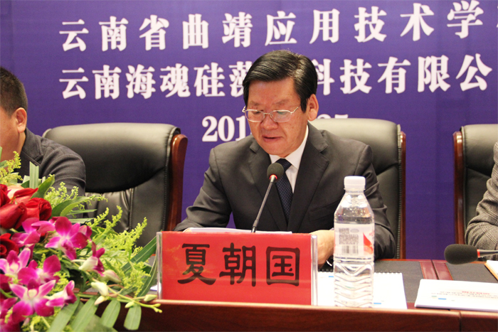学校党委书记夏朝国同志在会上提到,学校积极与云南海魂硅藻泥科技有限公司开办专业产业,把硅藻泥产业与建筑装饰专业学生教学密切结合,相互支持,相互促进,把学校办成集人才培养,科学研究,科技服务为一体的产业性经营实体,形成学校与企业浑然一体的创新型办学模式。有利于激发学生的创造力、创新力,并为学生工读结合、勤工俭学创造条件,有利于提高教师的业务水平,有利于促进曲靖市地方经济繁荣发展,有利于促进职业教育的健康发展。