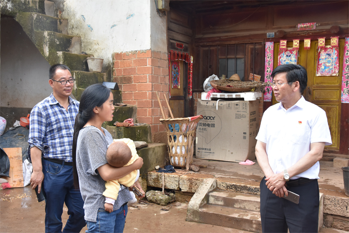 7月10日,学校党委书记夏朝国,党委副书记、校长王宗舜一行6人到会泽县乐业镇二顺村、丫口村深入走访贫困户,调研脱贫攻坚工作及看望驻村工作队员。