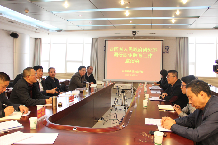 3月21日上午,云南省人民政府研究室调研组在曲靖市农业学校召开职业教育工作座谈会,学校副校长刘星参加了座谈会。