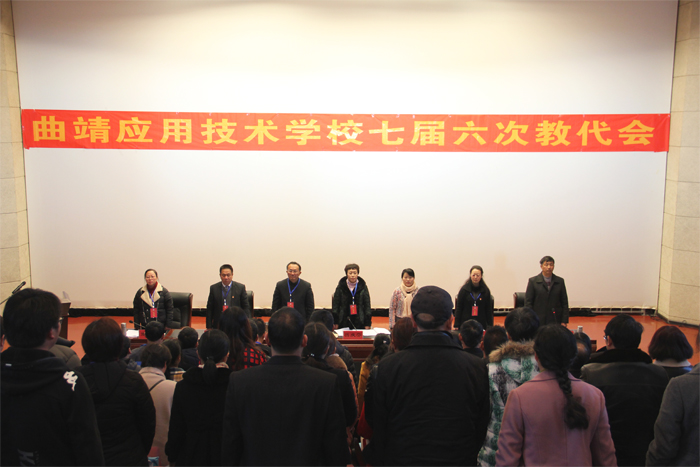 曲靖应用技术学校七届六次教代会于2018年1月8日、9日在学校召开,会期2天,会议应到正式代表57名,实到代表51名,列席代表11名,实到9名,特邀代表3名,实到2名。