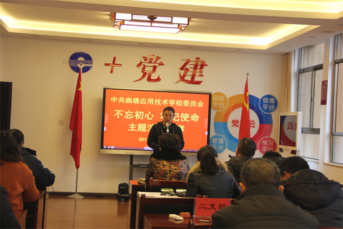 为深入学习贯彻党的十九大精神,把全体党员的思想和行动统一到党的十九大精神上来,把智慧和力量凝聚到各项任务上来,加快推动学校科学发展,12月27日下午,学校组织全体党员在党员活动室举办了“不忘初心,牢记使命”主题演讲比赛。本次比赛由学校党委班子成员担任评委,共有来自学校三个党支部的9名选手参加比赛。