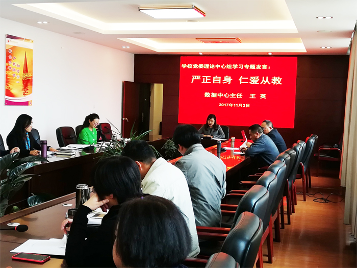 11月2日下午,中共曲靖应用技术学校委员会召开了党委理论中心组学习专题发言会。本次专题发言以“学习党的十九大报告、十九届一中全会、习近平在十九大闭幕会上重要讲话精神,坚持全面从严治党,聚力学校发展”为主题。学校副校长刘星、数据中心主任王英及党员教师查东琼相继作了专题发言。会议由学校党委委员、副校长徐敏同志主持,学校党政班子成员及全体中层管理人员参加了会议。