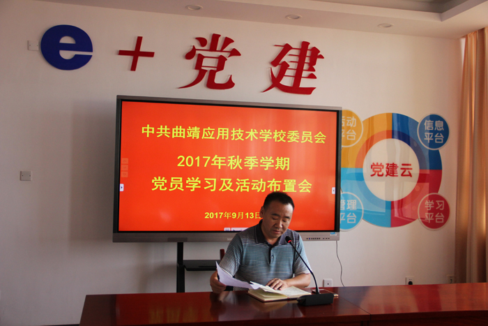 为认真贯彻上级党组织的精神与要求,科学谋划、精心部署新学期学校党建工作,使学习常态化,工作规范化,活动特色化。9月13日下午,曲靖应用技术学校召开了秋季学期第一次全体党员大会。学校党委委员、全体党员参加了此次会议。