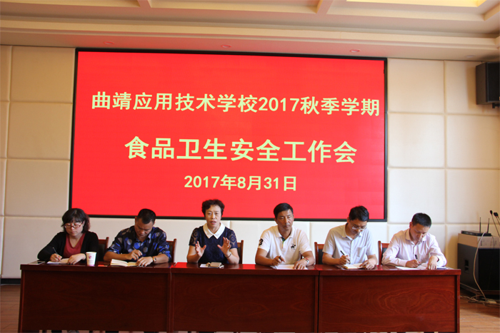 为进一步加强学校食品安全管理,防止学校食品安全事故发生,近日,曲靖应用技术学校召开了2017年秋季学校食品安全工作专题会议。党委书记、校长吕庆芬,工会主席和平江及总务科科长蒋泽平及新食尚餐饮管理有限公司相关工作人员参加了会议。