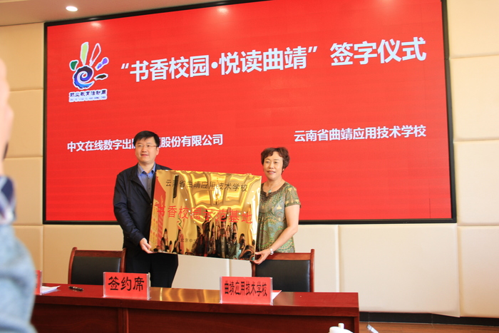 会议还举行了“书香阅读·悦读曲靖”签字仪式,北京中文在线教育科技发展有限公司与我校签订了书香校园示范基地协议,北京中文在线教育科技发展有限公司给我校捐赠了阅读设备。书香校园示范基地项目落地,为我校不断提升学生的核心素养,积极助推全民阅读,努力构建“书香城市”、“阅读曲靖”提供了有力保障。(来源:学校办公室)
