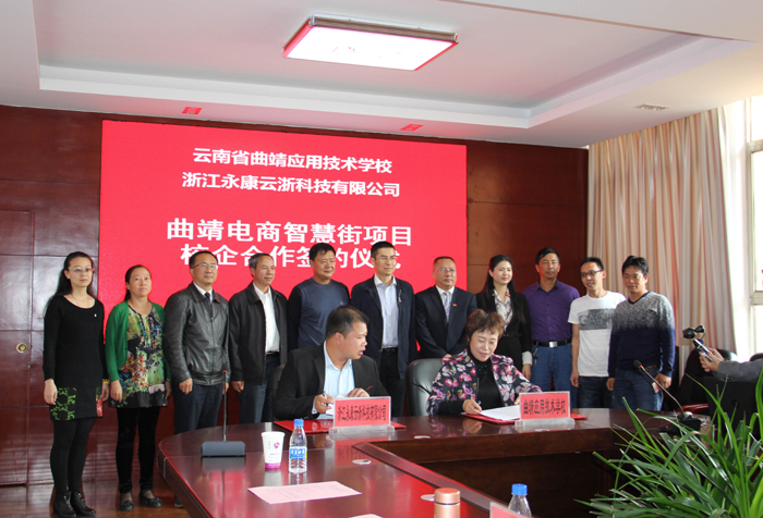 11月7日,曲靖电商智慧街项目校企合作签约仪式在我校隆重举行。会上,曲靖经济技术开发区与浙江云浙科技有限公司签订曲靖电商智慧街项目协议;学校与浙江永康云浙科技有限公司签订曲靖电商智慧街项目合作协议;学校与曲靖益众科技有限公司签订电商基地校企共建协议。