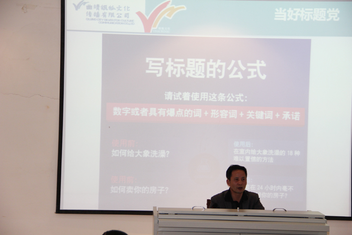 经过精心筹备,我校“曲靖M”注册记者于2016年3月中旬正式组建。3月23日下午学校办公室组织校内全体注册记者在综合楼101教室召开“曲靖M”注册记者培训会。会议明确了“曲靖M”注册记者职能权限,并邀请了曲靖银狐文化传播有限公司总经理韩东升从新闻的特点、要素、标题拟定和导语设计、摄影技巧等方面给注册记者做了培训。