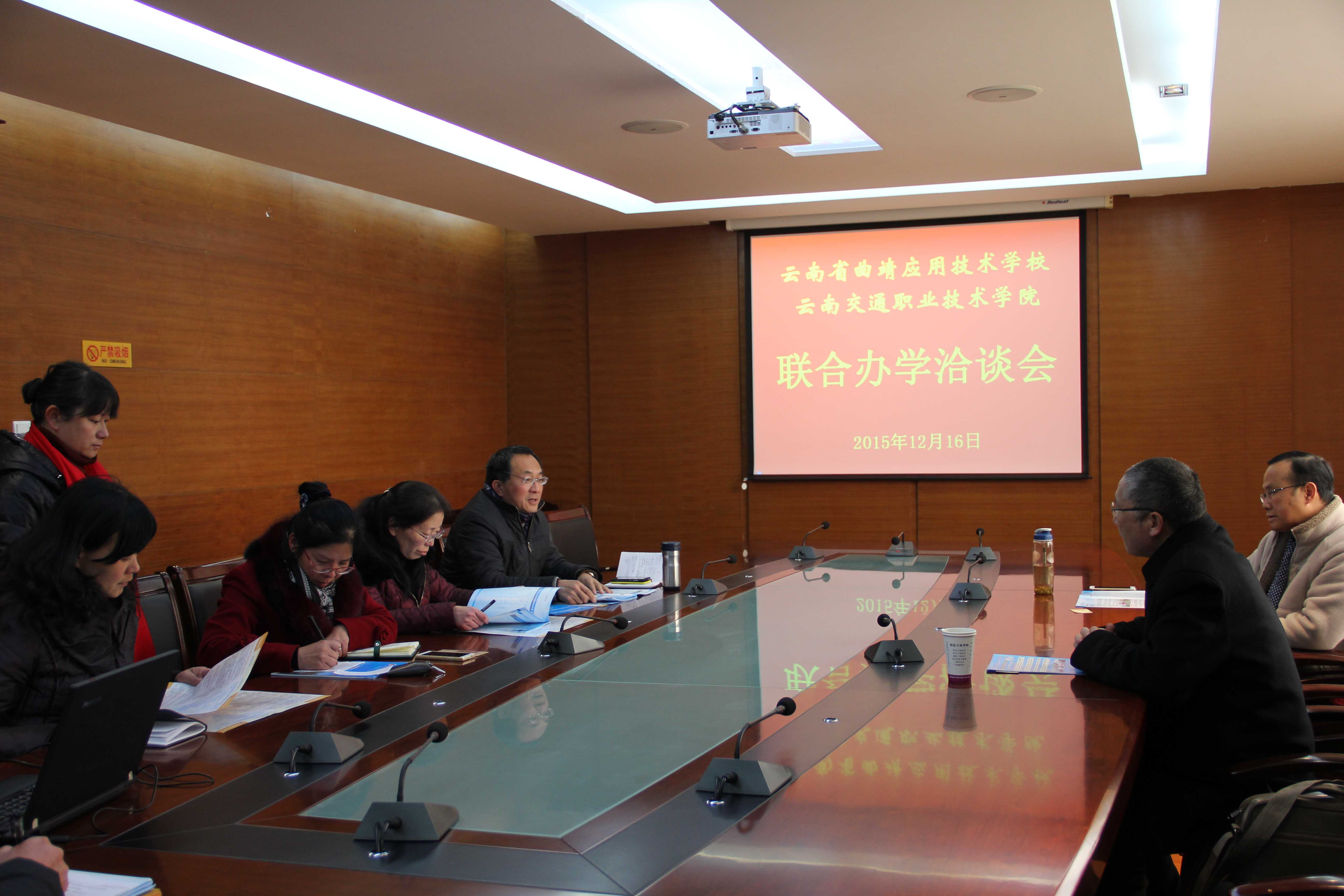 12月16日,云南交通职业技术学院招生就业处处长刘勇一行四人应邀到我校进行五年制联合办学考察。我校副校长刘星、招生科科长朱莉、教务科科长刘莉明、经贸教研室主任潘娥、机械教研室主任宋建华、电气教研室主任顾宝良等参加交流会并陪同刘处长一行参观考察了我校电子商务实训基地、汽修实训基地等。