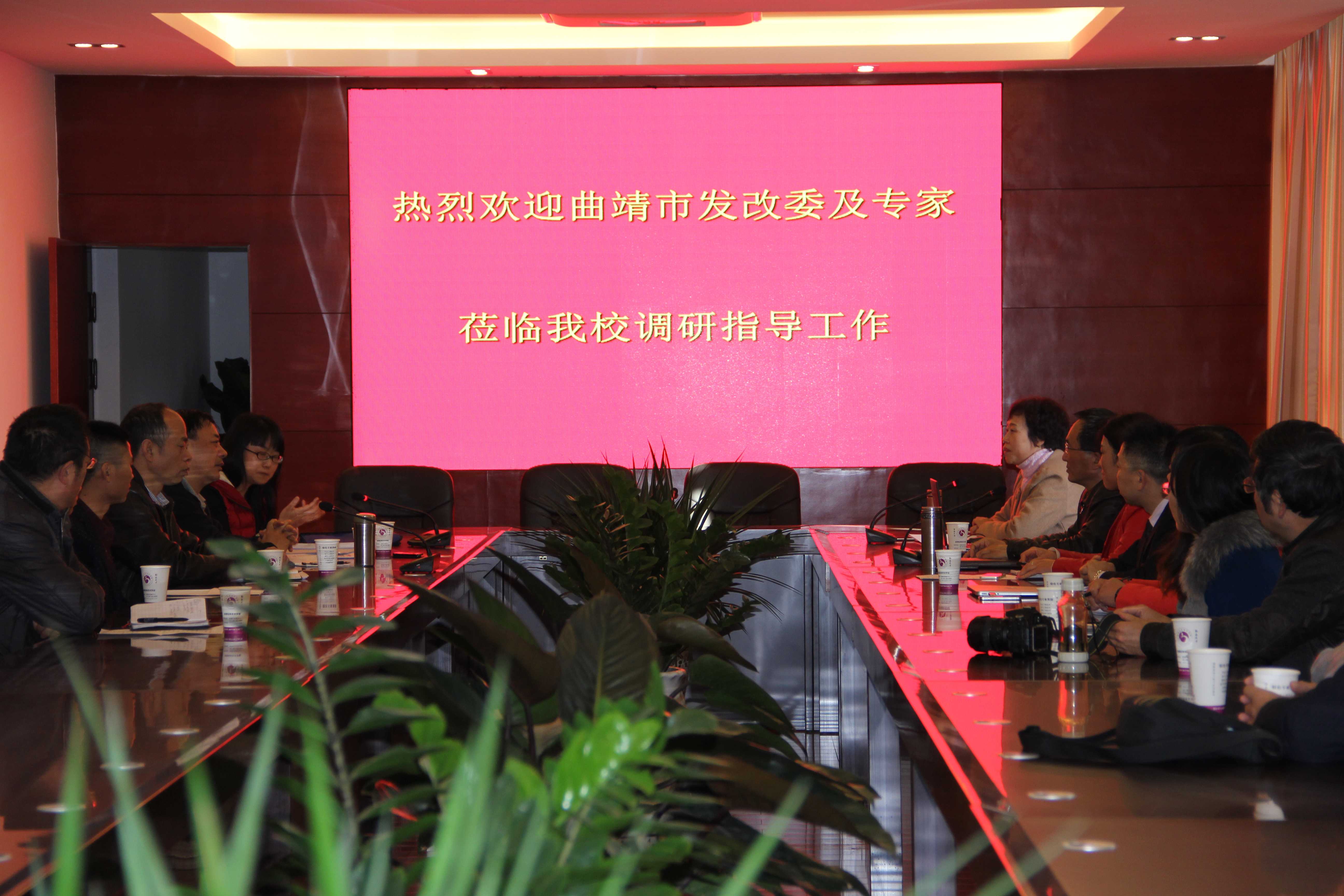 12月10日下午,曲靖发展改革委政策法规研究室刘科长、原市委党校常务校长田华、市发改委产业协调科朱发友一行到我校对“大众创新,万众创业”和“众创、众包、众扶、众筹”发展现状、相关平台建设及学生创业进行调研。