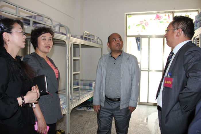 随后,考评组对学校的校园环境、文化建设情况和规范化管理及建章立制情况进行了实地考察。先后参观了实训楼和教学楼的硬件设施,检查了食堂和学生宿舍环境卫生等。