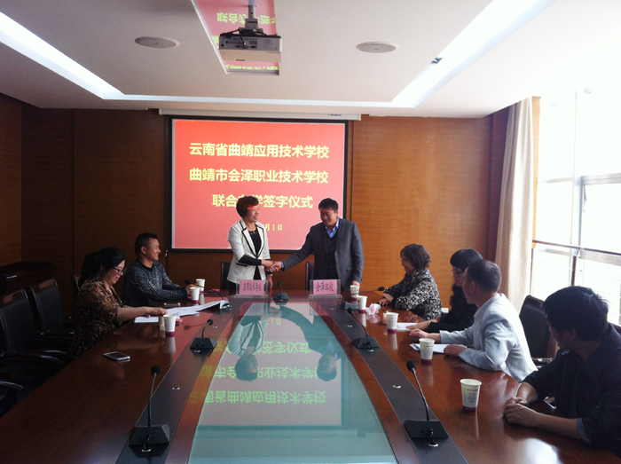 通过洽谈,双方达成一致意见,吕庆芬校长代表学校与会泽职业技术学校签订了2015年联合办学协议书。我校与会泽职业技术学校2015年将联合开办烹饪、建筑装饰专业。 (来源:招生科)