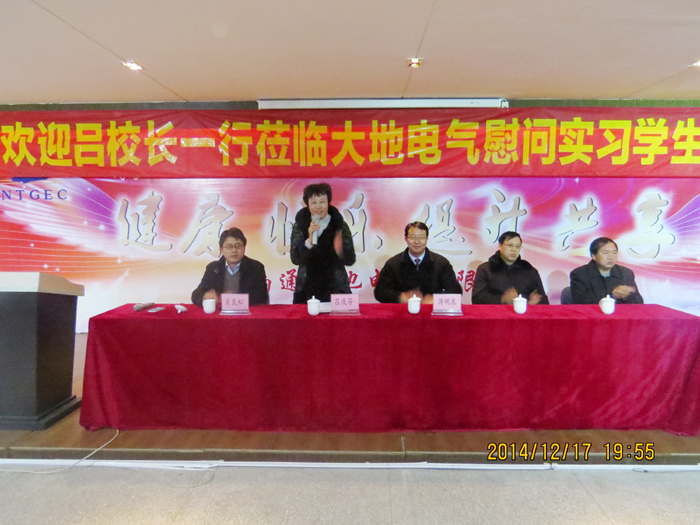 为提高顶岗实习学生的学习积极性和工作热情,12月17日,校长吕庆芬一行3人亲赴江苏南通大地电气有限公司看望慰问我校顶岗实习学生。