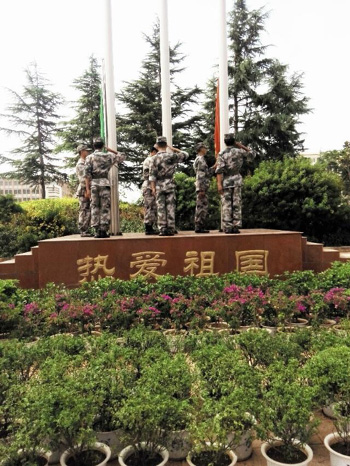 为了维护国旗的尊严,增强学生爱国意识,学校对升旗仪式进行了进一步规范。于15周开始将全校师生分为九个方队,对校卫队成员组成的国旗护卫队严格训练,升旗仪式上队员们良好的精神状态,得到了全校师生的认可和赞扬。(来源:保卫科)