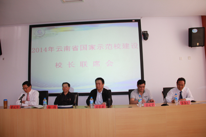 5月13日,学校示范校建设办公室主任王宗舜副校长带领各项目建设负责人及示范办成员一行9人到玉溪工业财贸学校参加了2014年云南省国家示范校建设校长联席会,来自全省各地州的国家中职示范校校长联席会会员学校和示范校建设学校共计30余家建设单位、百余名代表以及浙江亚龙集团、上海景格科技公司、昆明松骋汽车公司等企业参加了此次会议。省教育厅职成教处处长段剑新、调研员杨伟、玉溪市教育局副局长颜永宏等领导出席会议并作重要讲话。