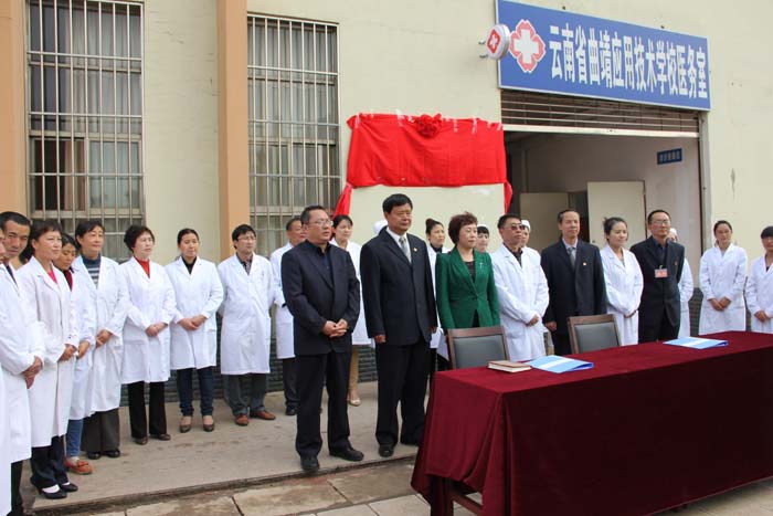 4月9日上午,学校举行了与麒麟同惠医院医疗服务合作协议签字、揭牌仪式。学校领导班子、麒麟同惠医院院长及20多名医护人员、学校医护人员参加了揭牌仪式。校长吕庆芬代表学校祝贺仪式的成功举办,她强调,医院和学校的合作经过一个月的试运行,运转良好,学校医务室也发生了可喜的变化,感谢同惠医院给予学校的大力支持,同时也感谢各位医务人员付出的辛勤劳动。学校与企业合作开展医疗服务在曲靖市职教中心几所兄弟学校是首创,免费接送特、急病人;优惠药品、诊疗、床位、观察费等费用;安排学校医务人员到医院免费进修学习等举措,对提升学校医疗服务工作意义重大。希望合作不断迈上新台阶!不断健康向前发展!曲靖市麒麟同惠医院院长邓华表示,本次合作是一次新的尝试,预祝合作取得圆满成功。(来源:总务科)