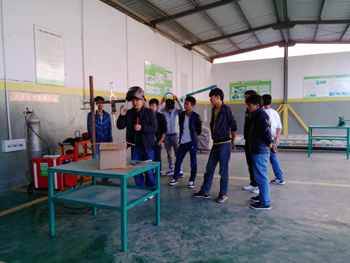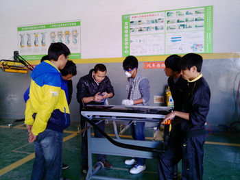 培训按内容分五个组进行,培训内容有二级维护、车轮定位团体赛、维修基本技能、车身修复(钣金)、车身涂装(涂漆)、空调维修个人赛共五个项目。本次培训,指导老师首先就比赛项目流程进行讲解,并参照《全国中职汽车运用与维修技能大赛完全训练手册》制定培训模式,在训练过程中将采用以下方法提高训练质量: