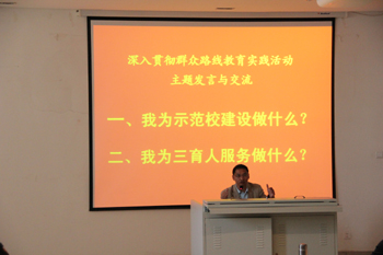 为深入贯彻群众路线教育实践活动,学校于10月9日下午组织全体党员结合学校国家级改革发展示范校项目建设等工作实际举行主题发言与交流大会。大会的主题是“我为示范校建设做什么?我为三育人服务做什么?