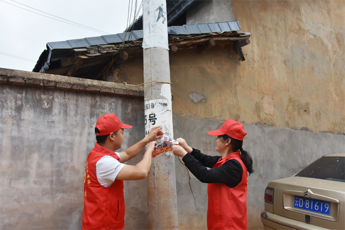 学校教师穿着红马甲、戴着红色的志愿者帽子,文明劝导社区居民维护社区环境卫生,他们带上抹布、铲刀、墙刷等工具,对社区街道两边的小广告一张一张的仔细铲除,改善社区生活环境,对部分不按规定占道经营街道摆摊的商贩,志愿者们上前文明劝导,合力共创美好家园。