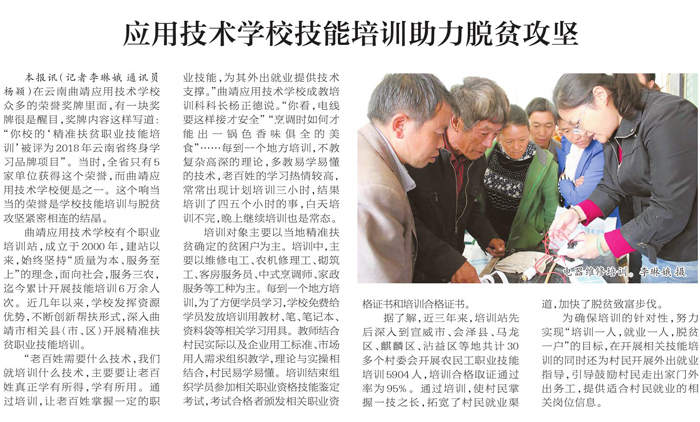 (曲靖日报)应用技术学校技能培训助力脱贫攻坚