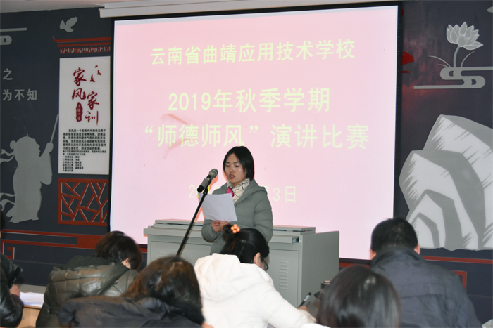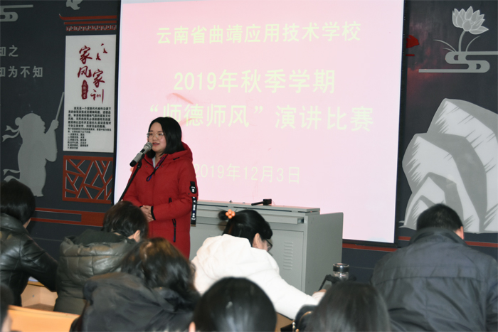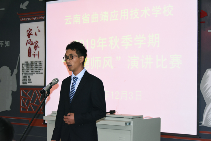 学校副校长、刘星发表致辞,他表示,本次演讲比赛旨在赞美师德、弘扬师德,营造“立师德 正师风 强师能”的良好氛围。比赛中, 9名教师选手紧紧围绕 “立德树人·正风铸魂”主题,以《德润学生心、共筑师生情》、《用爱铸就师魂》、《让爱在教育事业中闪光》、《不灭的灯盏》、《做个有温度的追梦人》、《不忘初心正师风、立德树人铸师魂》、《爱,教师的职责》、《立德树人,为师之本》、《只要心中有爱》为题,声情并茂的讲述着自己或身边先进老师的感人事迹,选手们高昂婉转传颂着“亲其师而信其道”的古训,讴歌着“有理想信念、有道德情操、有扎实学识、有仁爱之心” 的新时代要求,诠释了教书育人的真正内涵 ,唱响了“立师德、正师风、强师能”主旋律。