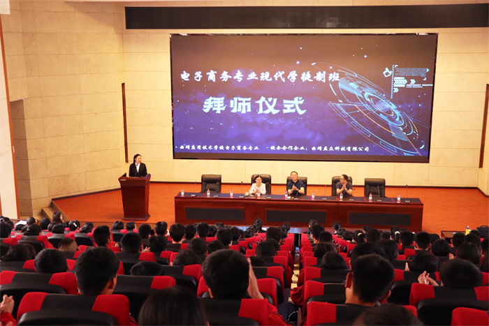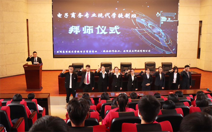 为深化产教融合,提高企业人才培养,推进校企合作育人,进一步做好现代学徒制试点工作。6月23日,学校举行以“弘扬传统师徒文化,践行现代工匠精神”为主题的电子商务专业现代学徒制班拜师仪式,学校副校长刘星、经贸教研室负责人及曲靖益众科技有限公司负责人出席拜师仪式,电子商务专业300余名师生参加仪式。