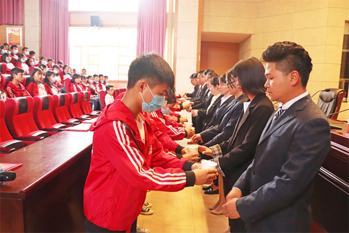 随后,学校领导及校企合作企业负责人为学徒制导师颁发聘书,导师们也当场作了宣誓。学徒们郑重地向师傅们鞠躬敬茶行拜师礼,开启全新的学徒制培养模式。