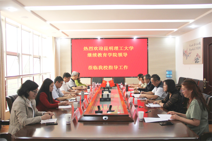 7月3日上午,昆明理工大学继续教育学院院长樊刚、副院长左红武一行6人到我校指导成人函授教育工作,学校党委副书记、校长王宗舜,党委委员、常务副校长郭海忠及相关负责人参加交流座谈,会议由学校党委委员、常务副校长郭海忠主持。