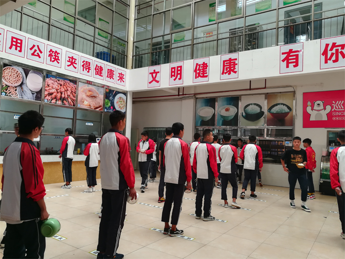 最后检查组来到学生食堂,正值学生就餐高峰期,学生按一米线有序排队就餐。进入后厨,检查组细致检查了留样管理、双人双锁等制度落实情况,留样管理规范有效。