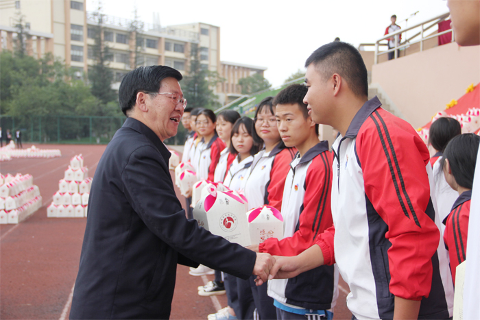 为隆重庆祝国庆、中秋双节的来临,营造喜庆热烈的节日氛围,弘扬和培养学生的爱国主义情怀,推动学校德育工作的深入开展。9月30日上午,学校组织全校师生举行“迎国庆、庆中秋、话感恩”系列活动,全校共计6000余名师生参加活动,活动由学校党委委员、副校长刘德华主持。