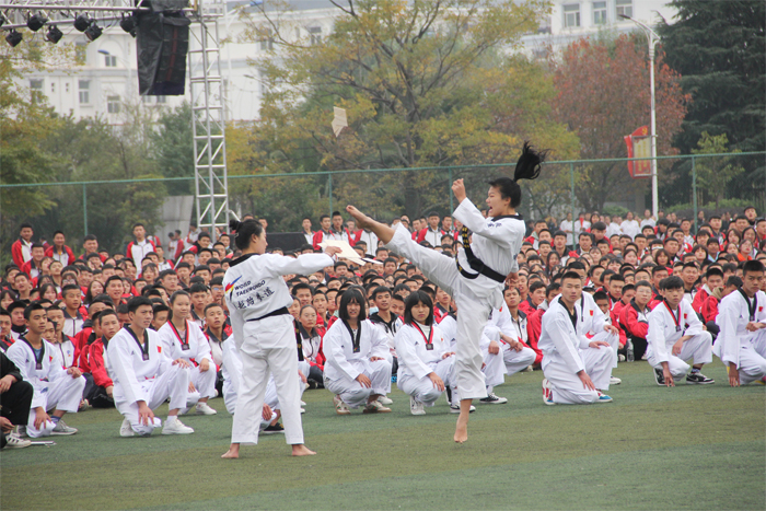 紧接着,学生进行广播操、礼仪操、格斗拳、跆拳道、团体操表演,表演精彩纷呈,充分展现了应用学子朝气蓬勃、积极向上的青春风貌,将开幕式推向高潮。