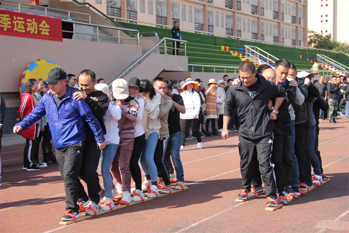 为丰富教职工文化体育生活,提高教职工的身体素质,培养集体意识与团队精神。11月13日下午,学校举行教职工趣味运动会。本次运动会共举行了四个项目:同舟共济、车轮接力、众星捧月、趣味“保龄球”。
