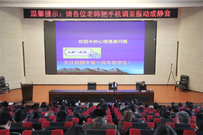 本次心理健康知识培训讲座对提高师生心理健康质量、提高教职工的生活工作水平有积极的作用,使师生们受益匪浅,同时也要求全体教师工必须掌握好心理知识,遵循学生心理发展的规律,在实践中灵活运用心理教育规律,探索学生的心理发展,总结心理教育的经验,与家庭、社会紧密联系,才能取得良好的成效。(来源:教务科)