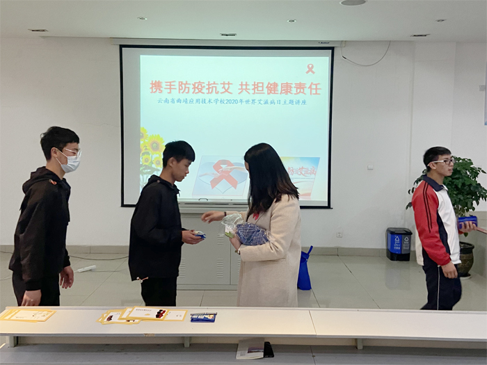 讲座中,高翠梅老师采用通俗易懂的方式向同学们介绍了什么是艾滋病、其发展历史及传播途径、感染艾滋病后的生理表现及反应等,并通过鲜活的事例、生动的语言,讲解了艾滋病的相关知识,警示学生自觉增强预防艾滋病的能力,叫响“控制艾滋病蔓延,从我做起”的口号,增强对艾滋病防治的全新认识和主动防艾意识。同时采用互动的方式让同学们来判断哪些是可能造成艾滋病传播的低、中、高风险行为并向同学们发放了艾滋病相关知识的宣传物品。学生们纷纷表示,作为新时代学生,要积极加入防艾志愿者队伍,参与到艾滋病防控的宣传工作中,从自身做起,携起手来,向“零”艾滋迈进,为促进学生身心健康发展助力。