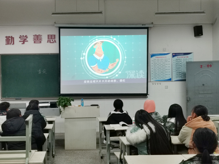 讲座上,学校副校长刘星发表讲话,他提到,今年是第33个“世界艾滋病日”,主题是“携手防疫抗艾,共担健康责任”。在校学生既是艾滋病防治宣传的重点人群,又是迎战艾滋病防治的主力军和生力军。他呼吁广大学生要洁身自好,从我做起,从源头上阻断艾滋病传播。