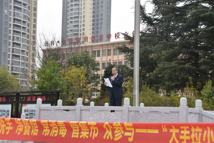 活动上,学校党委副书记、校长王宗舜同志宣传了爱国卫生专项行动的历史、意义和精神,教育引导师生积极参与爱国卫生运动,从自己身边做起,共建美丽宜居生活环境。随后,学校党委副书记、校长王宗舜同志带领全校师生一起学习《推进爱国卫生七个专项行动倡议书》,强化师生爱卫行动的参与意识、责任意识和担当意识;进一步提高学生健康素养,促进学生德智体美劳全面发展;进一步提高全校师生对爱国卫生“7 个专项行动”的知晓率、参与率和满意度。最后,全体师生在宣传布标上签字,以表决心。