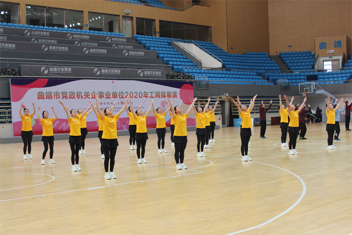 12月25日,学校组织20名教职工参加由曲靖市总工会、教育体育局及卫生健康委员共同举办的“曲靖市党政机关企事业单位2020年工间操展演”,本次活动由学校党委委员、副校长刘德华担任领队。
