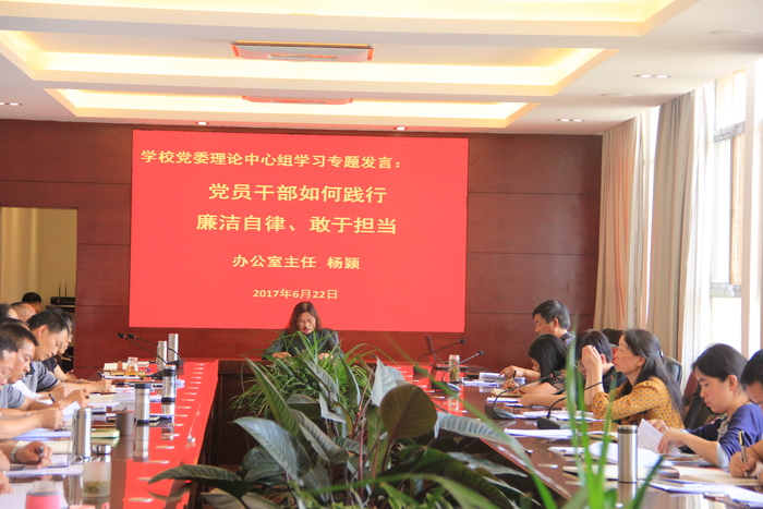 6月22日,中共曲靖应用技术学校委员会召开党委理论中心组学习专题发言会。本次专题发言以“学习《关于新形势下党内政治生活的若干准则》和《中国共产党党内监督条例》、《中国共产党党委理论学习中心组学习规则》和《关于县以上党和国家机关党员领导干部民主生活会的若干规定》”为主要内容。会议由校长助理徐敏同志主持,党委委员、工会主席和平江,办公室主任杨颖以及成教科科长杨正德相继作了专题发言,学校党政班子成员及全体中层管理人员参加了会议。