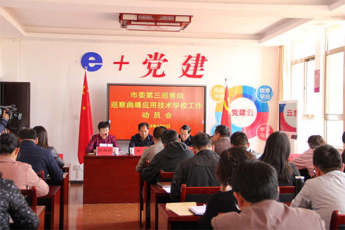按照市委的统一部署,2018年4月8日,市委第三巡察组进驻曲靖应用技术学校并召开巡察动员会。市委巡察办领导,市委第三巡察组全体成员,曲靖应用技术领导班子成员、近三年退休的副处以上干部、中层管理人员、教职工代表参加会议。